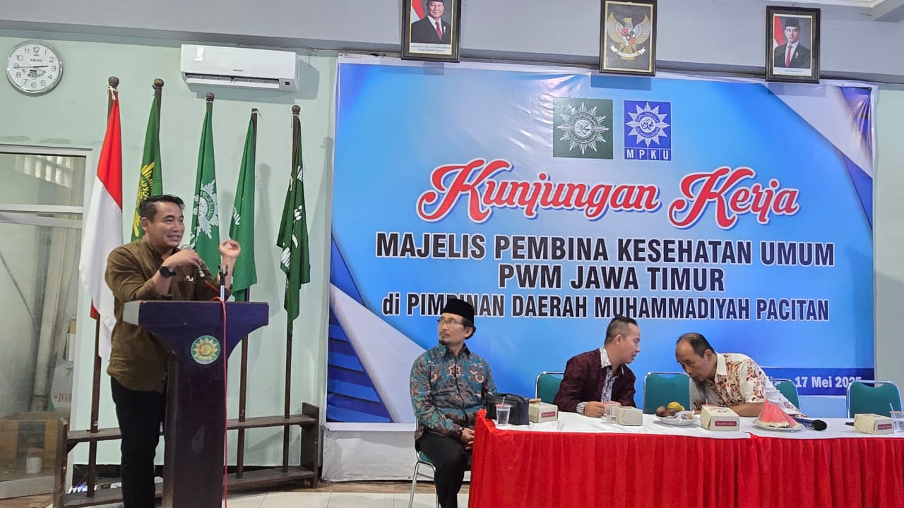 Dalam sambutannya, Ketua PDM Pacitan, Ustadz Suprayitno Ahmad, M.Pd.I.,  menyampaikan rasa syukur dan apresiasi atas Kunjungan Kerja MPKU PWM Jatim ke daerahnya. Ia menegaskan komitmen PDM Pacitan untuk terus mengembangkan pelayanan kesehatan melalui Klinik PKU Muhammadiyah. Bahkan, di periode kepemimpinannya saat ini, PDM melalui MPKU PDM Kabupaten Pacitan, tengah merintis pendirian klinik baru di wilayah Ngadirojo.