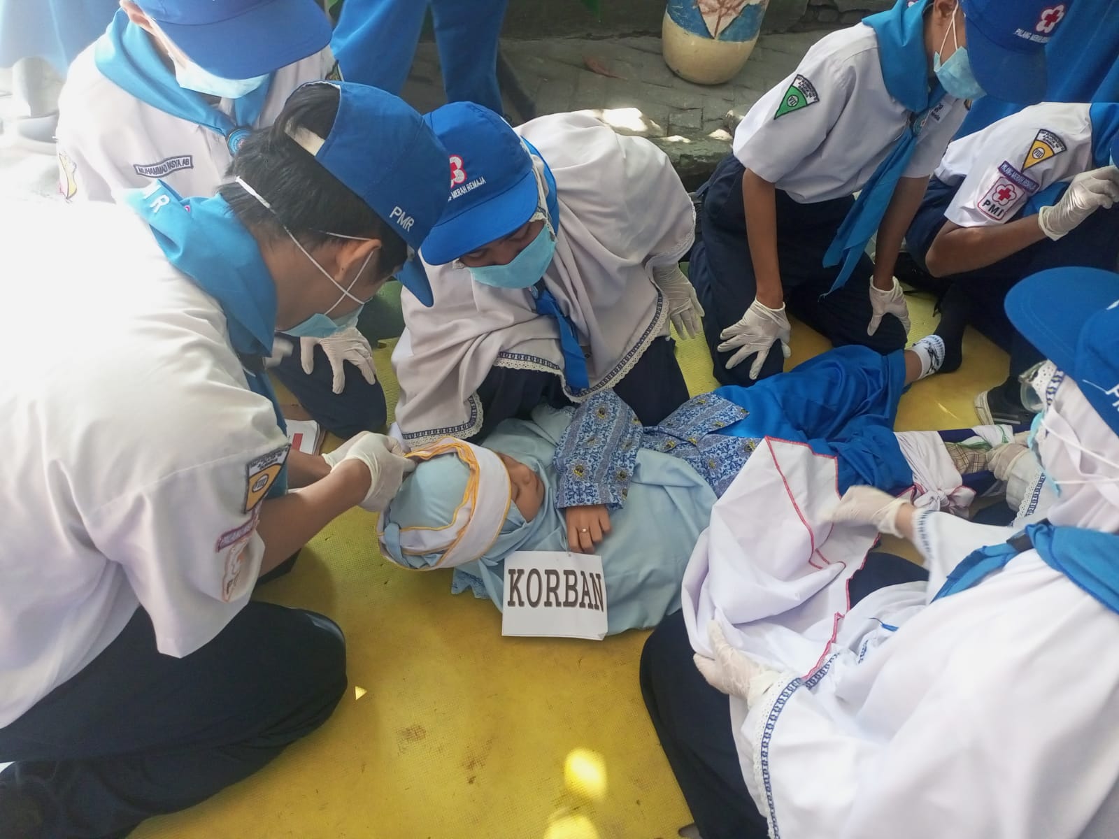 Para siswa, guru, dan anggota Palang Merah Remaja (PMR) terlihat antusias mengikuti setiap instruksi, mulai dari berlindung di bawah meja, mencari tempat aman, hingga evakuasi menuju titik kumpul yang telah ditentukan.