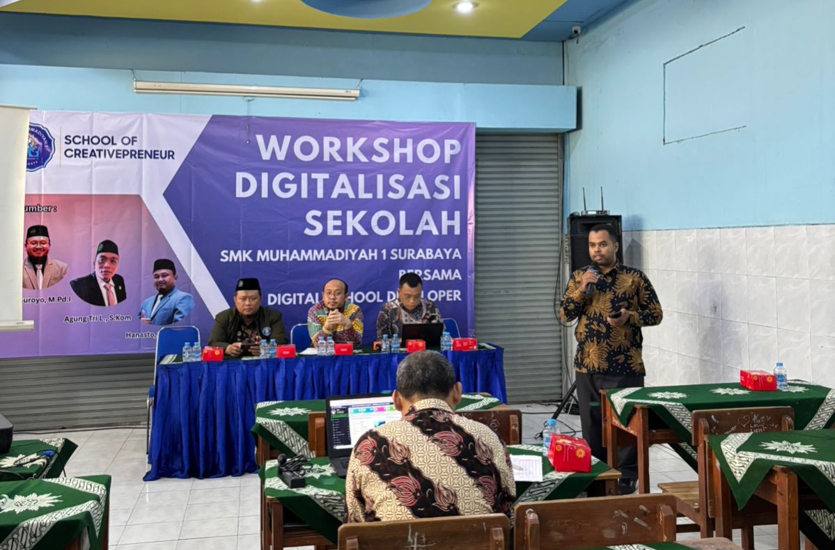 Surabaya, kartanusa – SMK Muhammadiyah 1 Surabaya (SMK MUDISA) kembali menunjukkan komitmennya untuk terus berinovasi dalam dunia pendidikan. Pada Sabtu–Minggu, 23–24 Agustus 2025, MUDISA gelar Workshop Digitalisasi Sekolah bekerja sama dengan Digital School Developer (DSD).