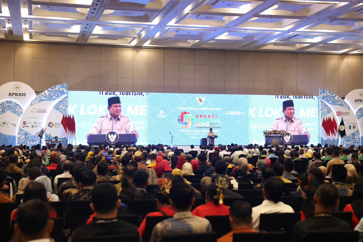 Presiden Prabowo Subianto secara resmi membuka Asosiasi Pemerintah Kabupaten Seluruh Indonesia (APKASI) Otonomi Expo Tahun 2025 yang berlangsung di Nusantara Hall, Indonesia Convention Exhibition (ICE) BSD, Tangerang, Provinsi Banten, pada Kamis, 28 Agustus 2025.