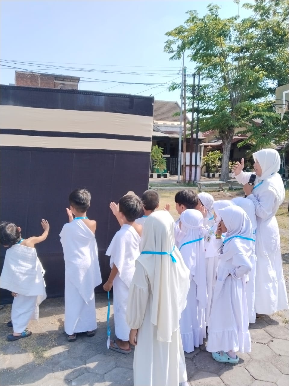 Dalam kesempatan tersebut juga, Ustadzah Lilik Kholifah Ketua Panitia menyampaikan bahwa kegiatan ini juga dilengkapi dengan properti berupa miniatur Ka’bah, Hijr Ismail, Tugu Shafa dan Marwah.