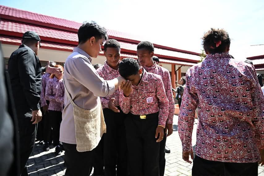 Wakil Presiden (Wapres) Gibran Rakabuming meninjau Sekolah Rakyat Menengah Atas (SRMA) 41 Biak Numfor, Papua, Selasa (13/01/2026). Peninjauan ini bertujuan untuk memastikan penyelenggaraan pendidikan berjalan optimal dan benar-benar menjangkau anak-anak dari keluarga kurang mampu sebagai upaya pemerataan akses pendidikan di seluruh wilayah Indonesia.
