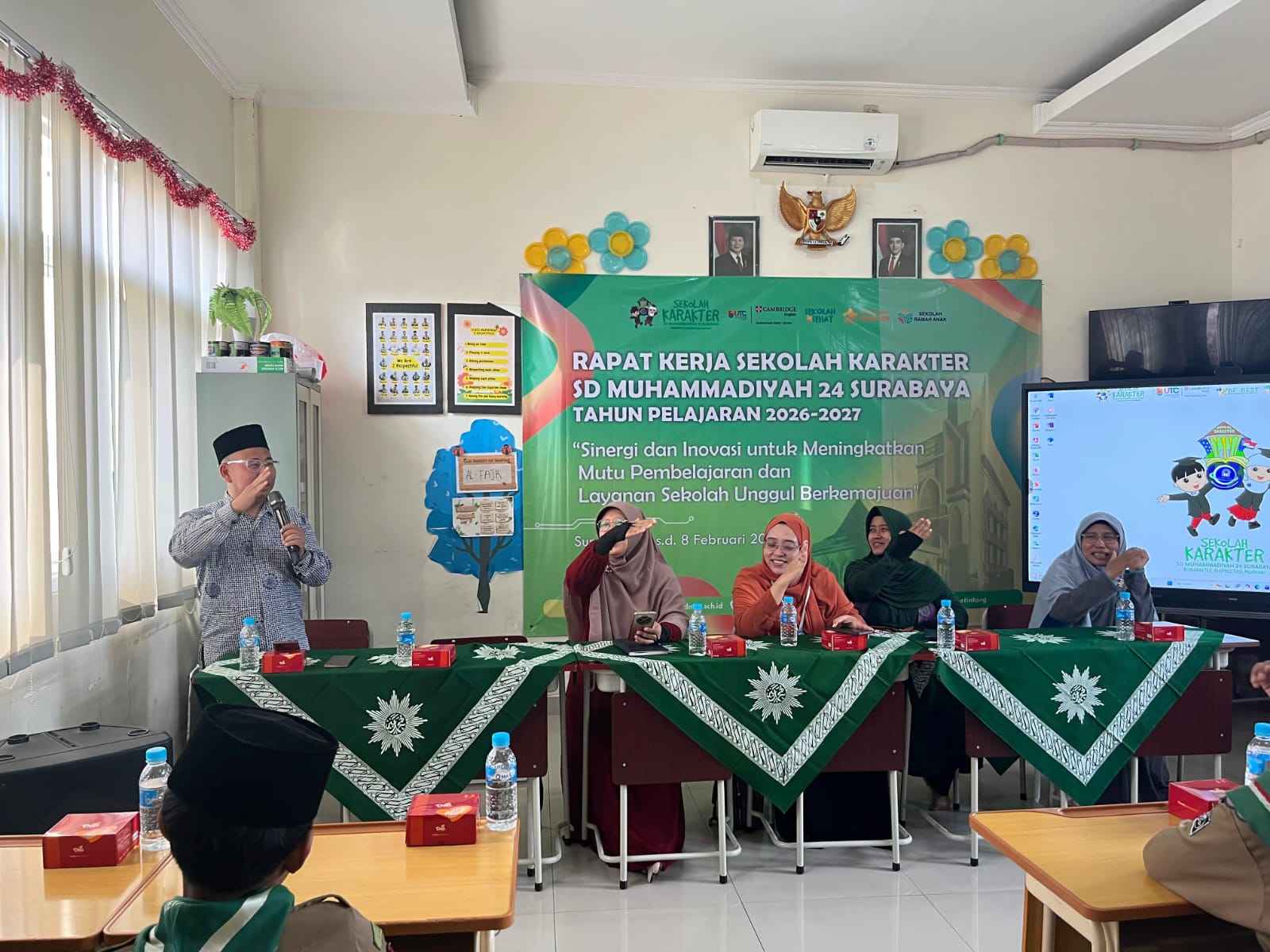 Surabaya, kartanusa – Wakil Ketua Pimpinan Cabang Muhammadiyah (PCM) Wonokromo, Ustadz Muhammad Barid, S.Ag., M.Pd.I., membuka secara resmi Rapat Kerja (Raker) Sekolah Karakter SD Muhammadiyah 24 Surabaya tahun pelajaran 2026-2027, yang diikuti oleh seluruh guru dan karyawan dengan penuh khidmat dan kebersamaan. Jum’at (06/02/2026).